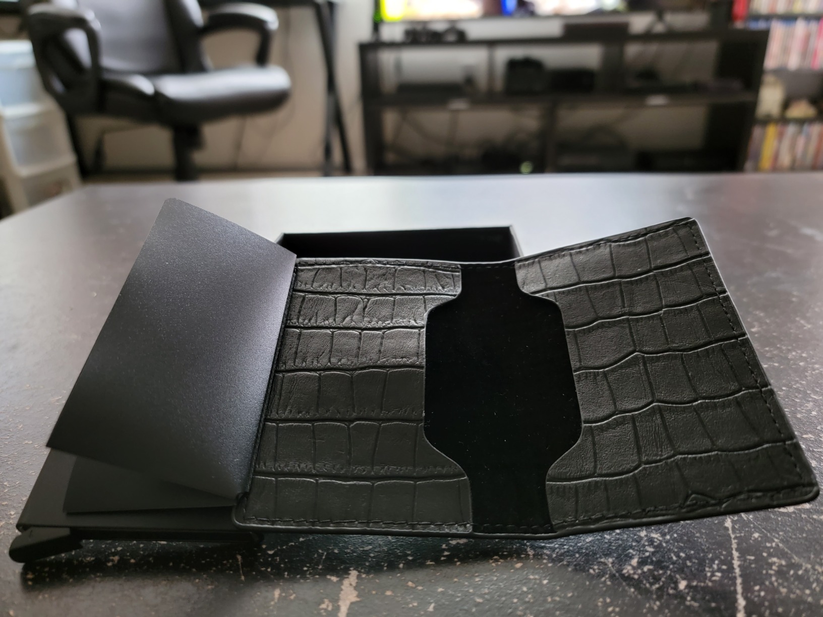 Pop Up Wallet, Minimalist Slim Wallet RFID Blocking Credit Card Holder Case Automatic Quick Access Wallet Genuine Leather Aluminum Business Card Wallet with Money Clip for Men (Black)